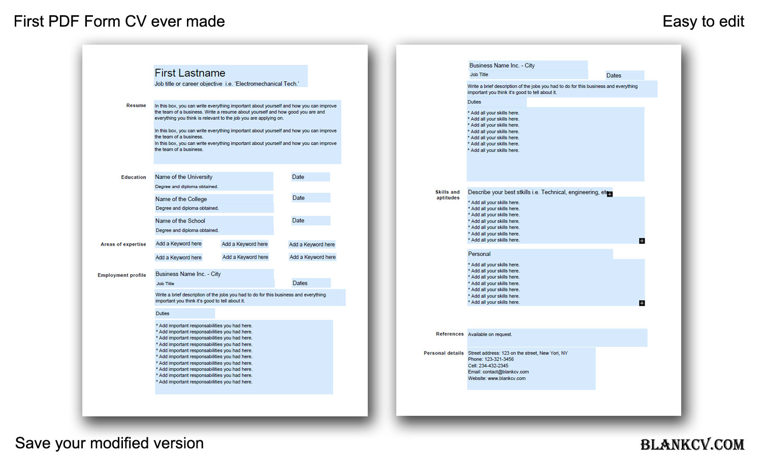 Save your cv in the right file format. All of the pdf resumes have been made with resume.io, an easy tool to build your own resume online in minutes that come with many designs. Building an attractive cv helps in increasing your chances of getting the job. The resume pdf template has six different sections that allow you to gather applicant's data such as personal information, education background, applicant's attainment about a computer, and the experience, also employment history of the past ten years, with the references who vouch for the candidate, and questions about the job. Write your cv in chronological order, reverse chronological order or make your own combination.